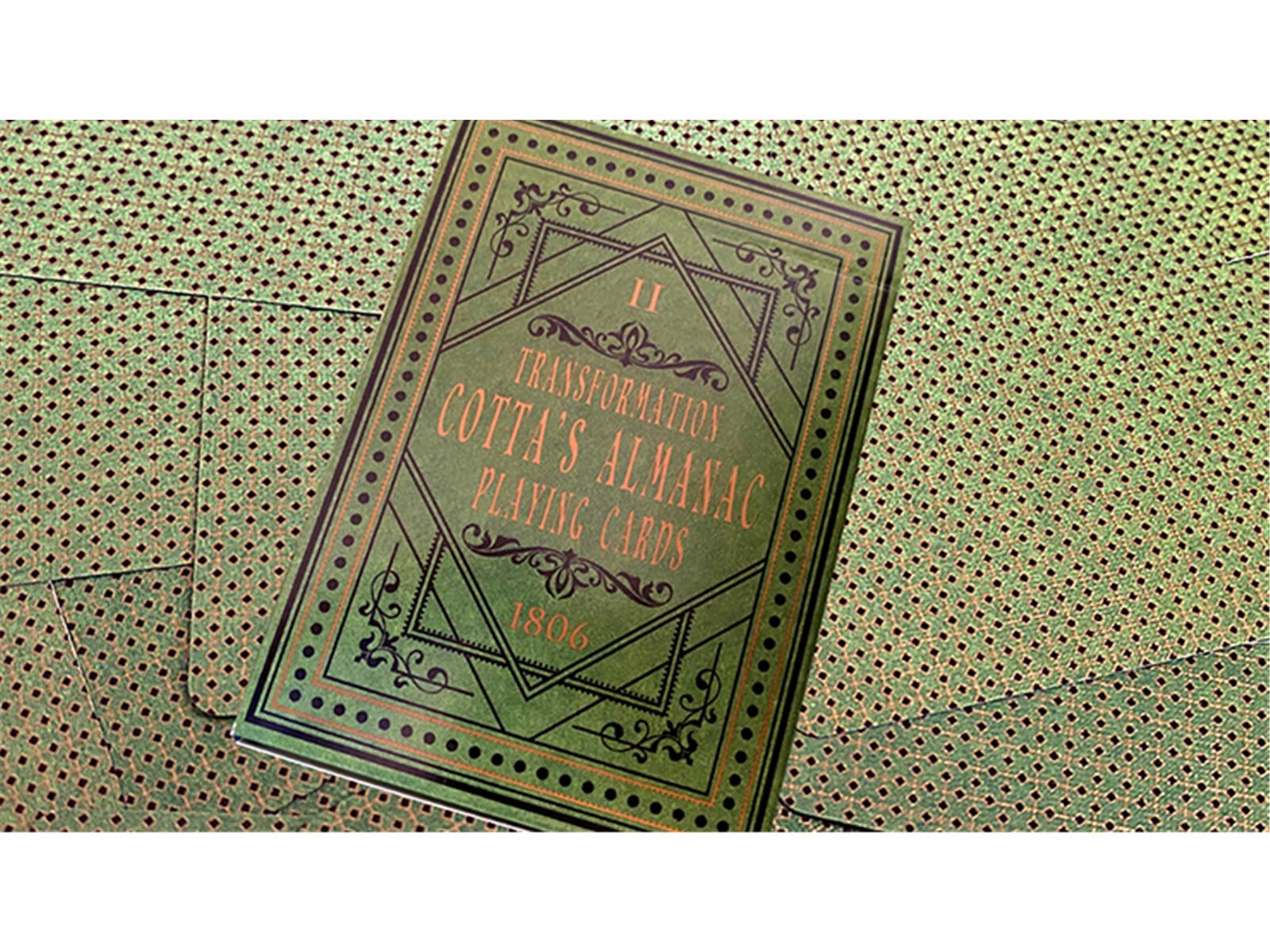 Einführung einer präzise digital von Hand nachgebildeten Reproduktion des nächsten Almanach-Decks von Cotta voller Geschichte, das ein Jahr nach dem vorherigen blauen Deck fortgesetzt wird, dem ersten veröffentlichten vollständigen Transformations-Spielkarten-Deck der Welt!