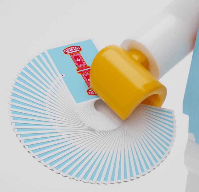 The Gemini Casino Collector's Edition is a print run of 1000 decks and features a light blue, yellow and red colour way throughout.