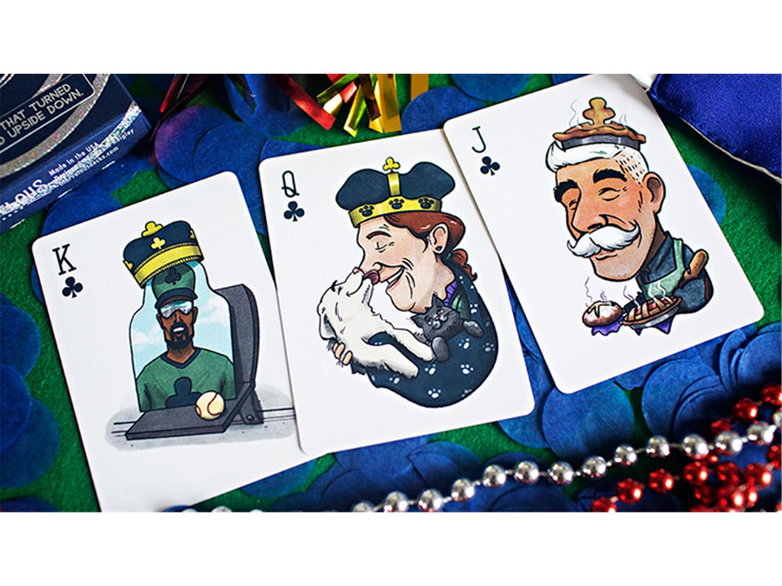 Die Biese verfügt über luxuriösen glitzernden Marine-Schaft mit Silber- und Holofolien. Standard Silver Tuck ist auf 660 Decks begrenzt. Dieses Deck ist auch in einem roten Standard-Tuck erhältlich, der auf 250 Decks begrenzt ist. Beide Decks verfügen über dieselben benutzerdefinierten Kartenrückseiten und benutzerdefinierten Gesichter.