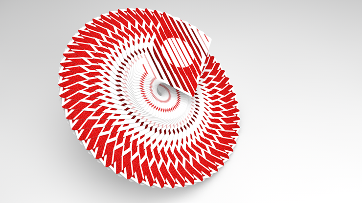 Das Deck verwendet eine Vielzahl von Strichstärken mit negativem Abstand und Verläufen, um sicherzustellen, dass das erkennbare Thema von der markanten Kartenrückseite, auf der ein "O" erstellt wird, bis hin zu den benutzerdefinierten Pips und Platzkarten fortgeführt wird.