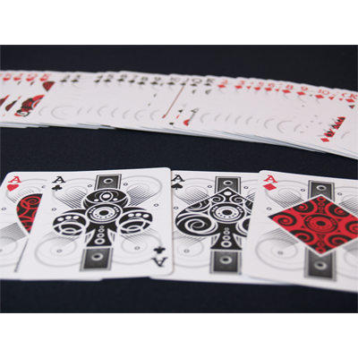 This deck is available in a killer red or white back design. It features original art beautifully designed custom court cards, Aces, Jokers and pips that will cause double takes!