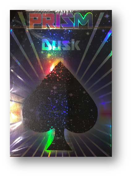 Alle Karten in den Prisma-Decks sind vollständig benutzerdefiniert. Im Dämmerungsdeck befinden sich die Anzugmarkierungen (Pips) auf der Vorderseite in einem dunklen Abendhimmel voller Regenbogensterne.
