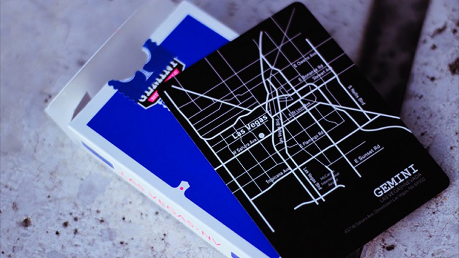 Gemini is a fictional casino deck inspired by treasured classics like Jerry's Nugget and Dunes Casino playing cards. Gemini was made to look like a vintage deck you might find in an old Las Vegas warehouse from the '70s.