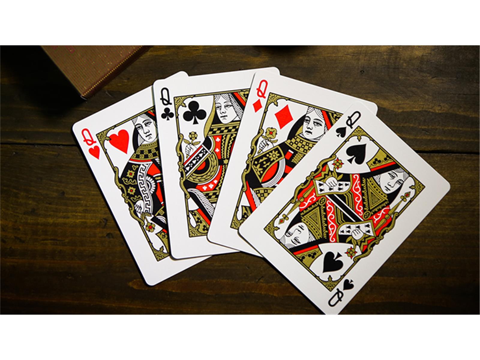 Das Ace of Spade wird von einem Showgirl im Vegas-Stil angeführt, und die Jokers bieten einen einzigartigen Spielautomaten im Old-School-Stil mit dem Nummer-7-Symbol und den Farben im Rampenlicht. Jede Semi-Custom-Court-Karte strahlt mit der einzigartigen Randbehandlung Luxus aus, bleibt aber mit dem Court-Kunstwerk, das wir alle kennen und lieben, extrem spielbar.
