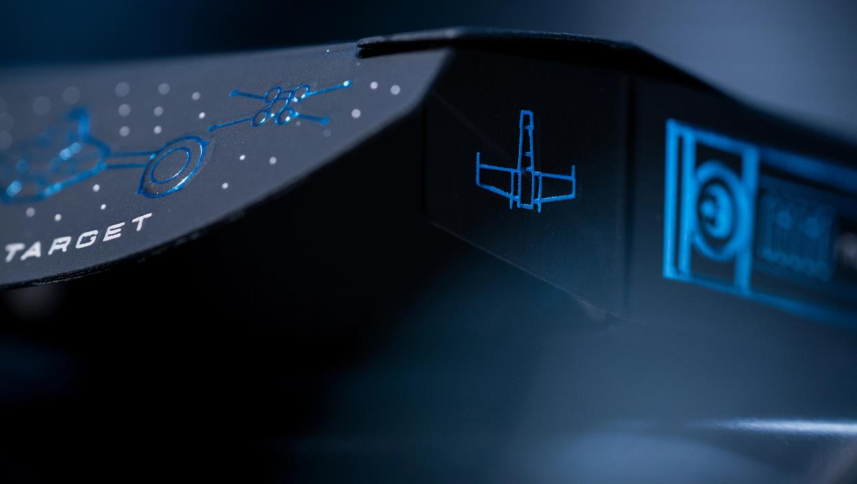 The outer packaging is breathtaking, with striking, vibrant blue foil - mixed with clear, reflective foil that creates the illusion of the Millennium Falcon cockpit window.