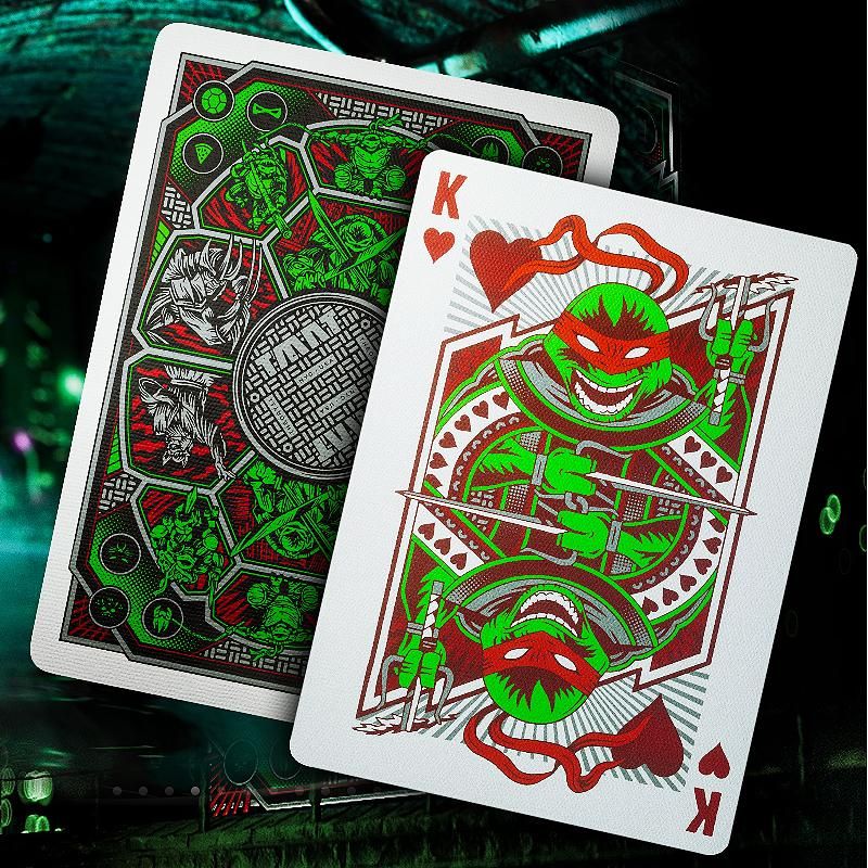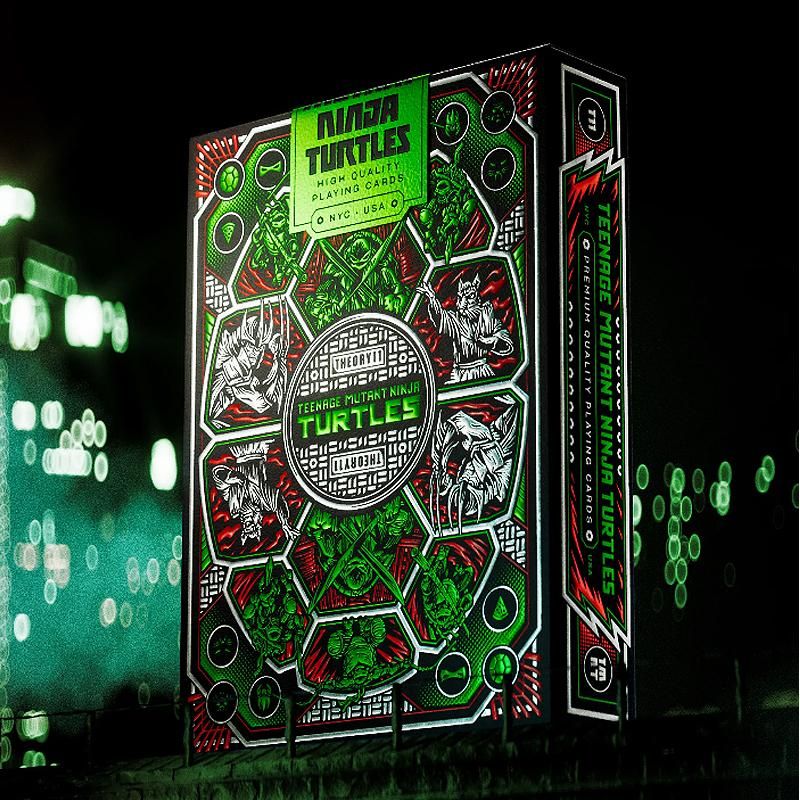 Die Karten haben eine ganz eigene Hülle - auffällige grüne, rote und silberne Folie auf schwarzem Premium-Papier macht sie zu einem Muss für jeden TMNT-Superfan! Mach dich bereit für ein Pizza-Abenteuer...