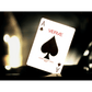 The deck was printed by the US Playing Card Company on Bee Casino quality card stock with a high-embossed Magic Finish. The tuck box is embossed with foil printing for an added touch of luxury. The faces are printed with three metallic inks and include custom court cards, aces, and jokers.